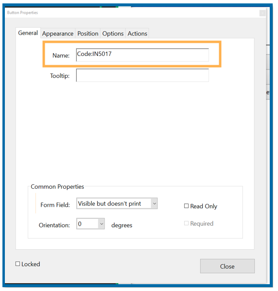 - To complete the setup click the General Tab. In the Form Field you will see ' All Properties Link' change to Visible but doesn't print, as below.