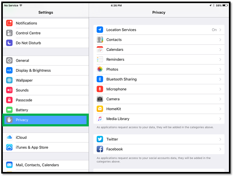 Scroll down, Tap 'Privacy'