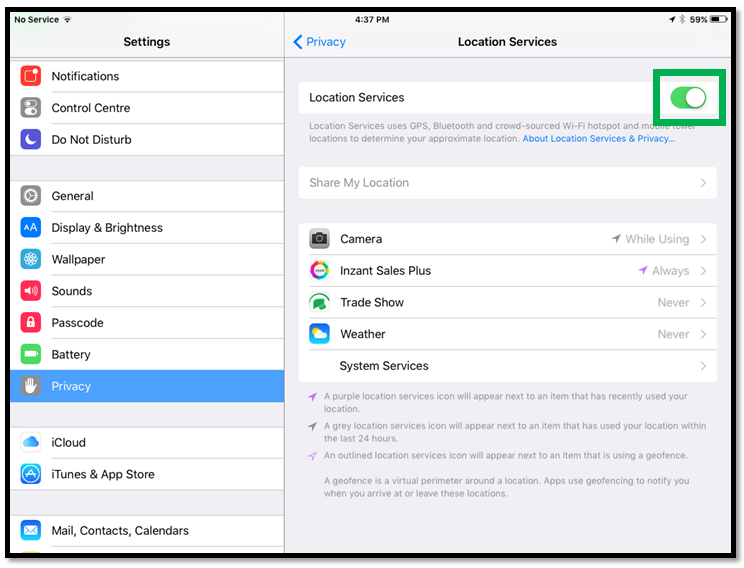 Enabling Location Services for Inzant iOS Apps