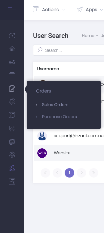 The sidebar in the Inzant Sales Admin user interface is the main navigation method – it allows you to quickly swap between the various screens. The sidebar will always be located in the far left zone of your screen.