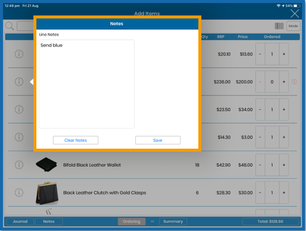 • Video Guide - Inzant Sales iPad - Ordering- Adding a line item note