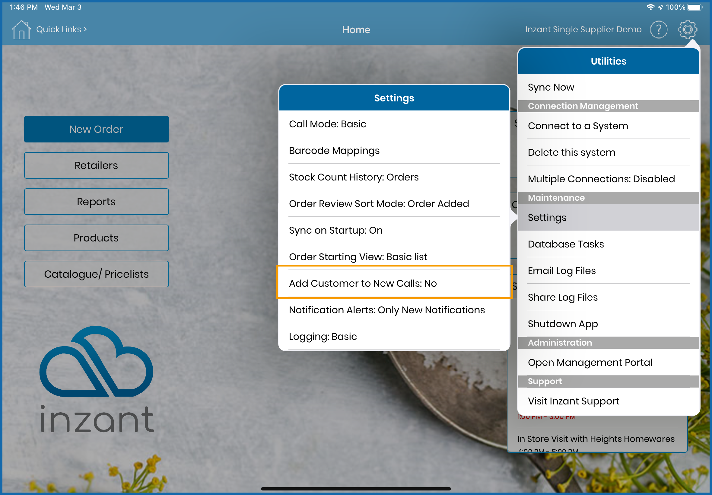 The Inzant Sales App allows you to customise the way you would like to use the App. This guide describes the different settings that are available. To access Settings navigate to the 'Utilities' icon in the top right of the Home Screen. You will now ...