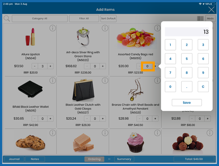You can now enter a number, press save and the desired amount will add to the order.