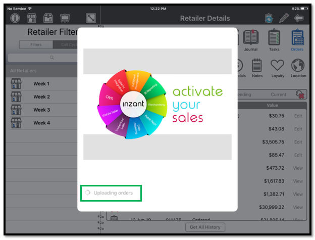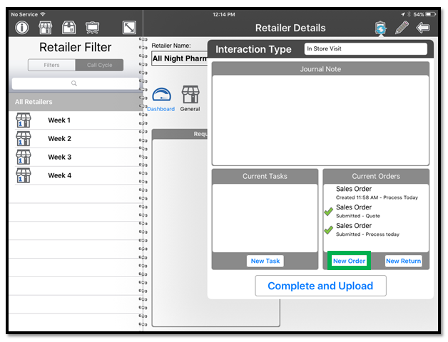 The order is now complete, to upload to the cloud tap on the 'Complete and Upload' button on the interaction.If you'd like to do additional orders, tasks or capture a journal entry whilst in the same call, feel free to complete all of those on the same interaction, and tap the 'Complete and Upload' at the end of the call.