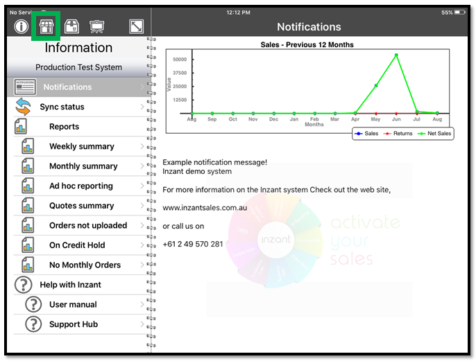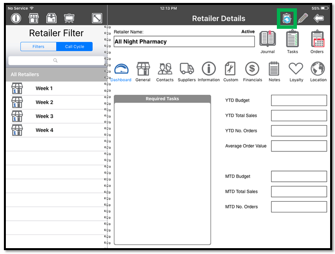 Open the Inzant Sales Plus App on your device, Tap the Retailer Icon highlighted to select the Retailer you would like to start an order for.