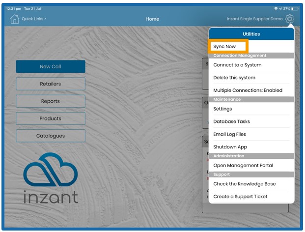 The manual sync function can be found in Utilities highlighted below in the top left corner of the app.