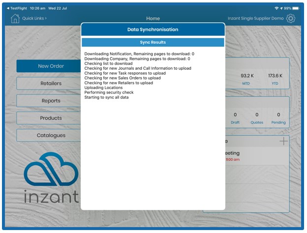 - Once the essential information from the system is downloaded you can cancel the sync by touching the Cancel Sync field highlighted below.